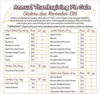 Nov. 13 - Pie Sale Orders Due