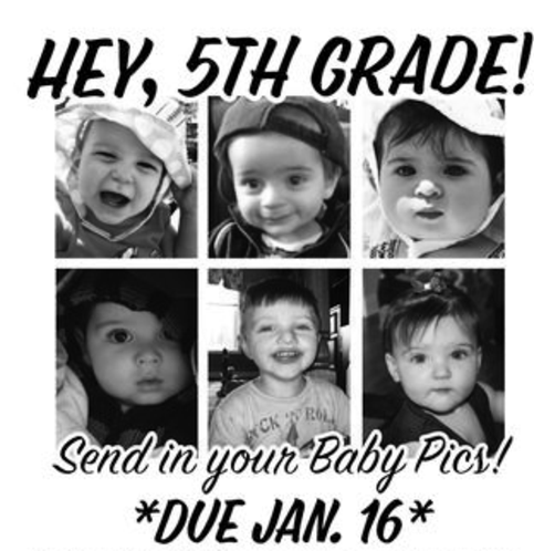 In addition to the baby picture, please submit FIVE pictures of your child taken at Sunquam events with other 5th grade Sunquam students. These can be pictures from school events throughout the years, K-5 (Falltastic, Book Fair, class trips, concerts, etc.). These pictures will be used in both the yearbook and the 5th grade montage.