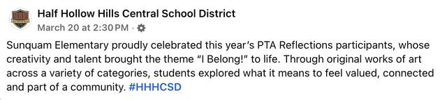 The students' work will be judged first at Sunquam. The two highest scores in each category move onto the Suffolk Region Reflections Competition and from that round, can even go on to the National Reflections Competition.